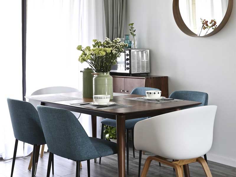 本案例风格定位于简欧风格,色彩选择十分灵动,避免了氛围单调,视觉上更清新提升空间活力。