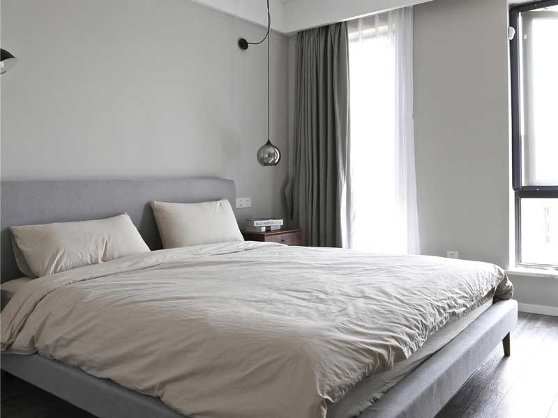 卧室没有过多的装饰,力求呈现简洁素雅的睡眠环境,创意床头灯设计提升空间设计感,更显时尚。