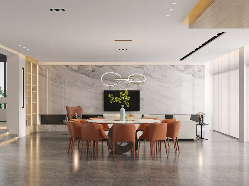 本案例风格定位于现代简约风,大理石基底搭配精致柔软的软装家具,错落有致使得整体更显品质感。