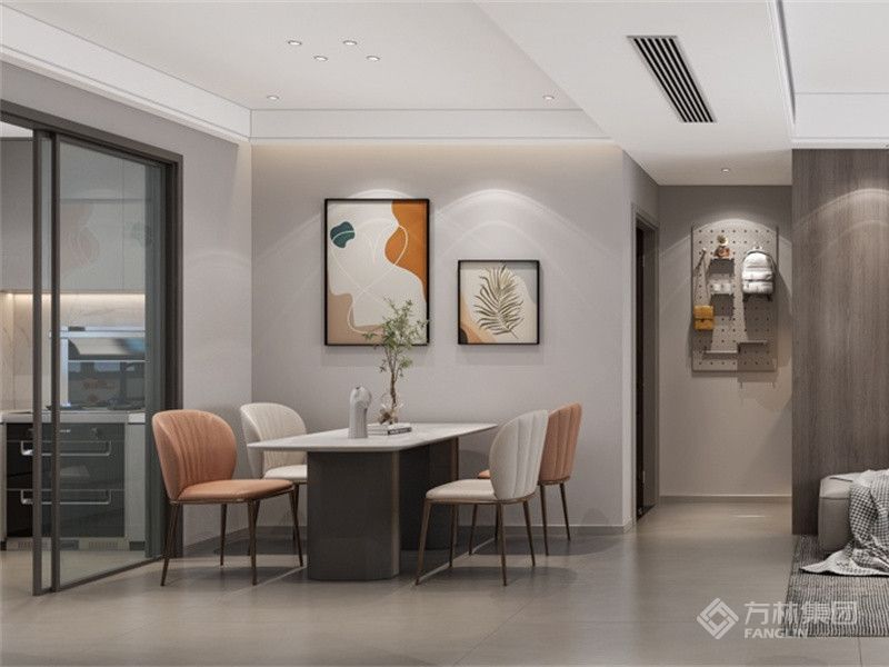 我们在解决户型固有问题的同时,将设计重点放在空间的交互性上,打造一个具备系统收纳的客厅、餐厅)开放空间。提升户型利用率与居住品质的同时,增加空间使用者的交流与互动。