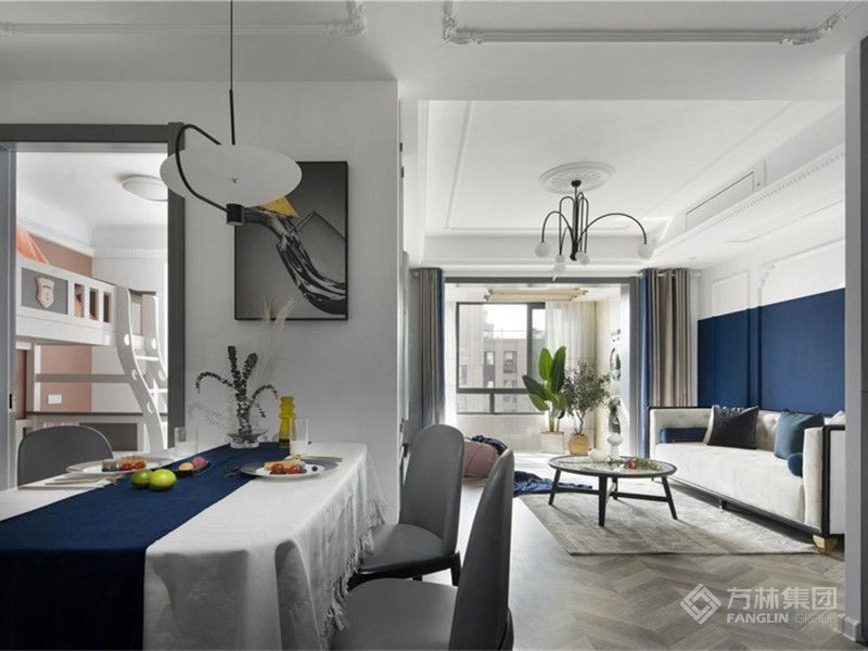 "如果说装修风格体现了家的灵魂,那么美式风格就是开阔的、温馨的和舒适的。设计师从业主对新家的期待出发,基于美式风格的硬装基础,充分利用室内空间,通过软装的尺寸、颜色、材质等要素,将温馨、浪漫的氛围融入典雅大气的空间中,更显室内温暖干净、富有生活气息又不失格调。"
